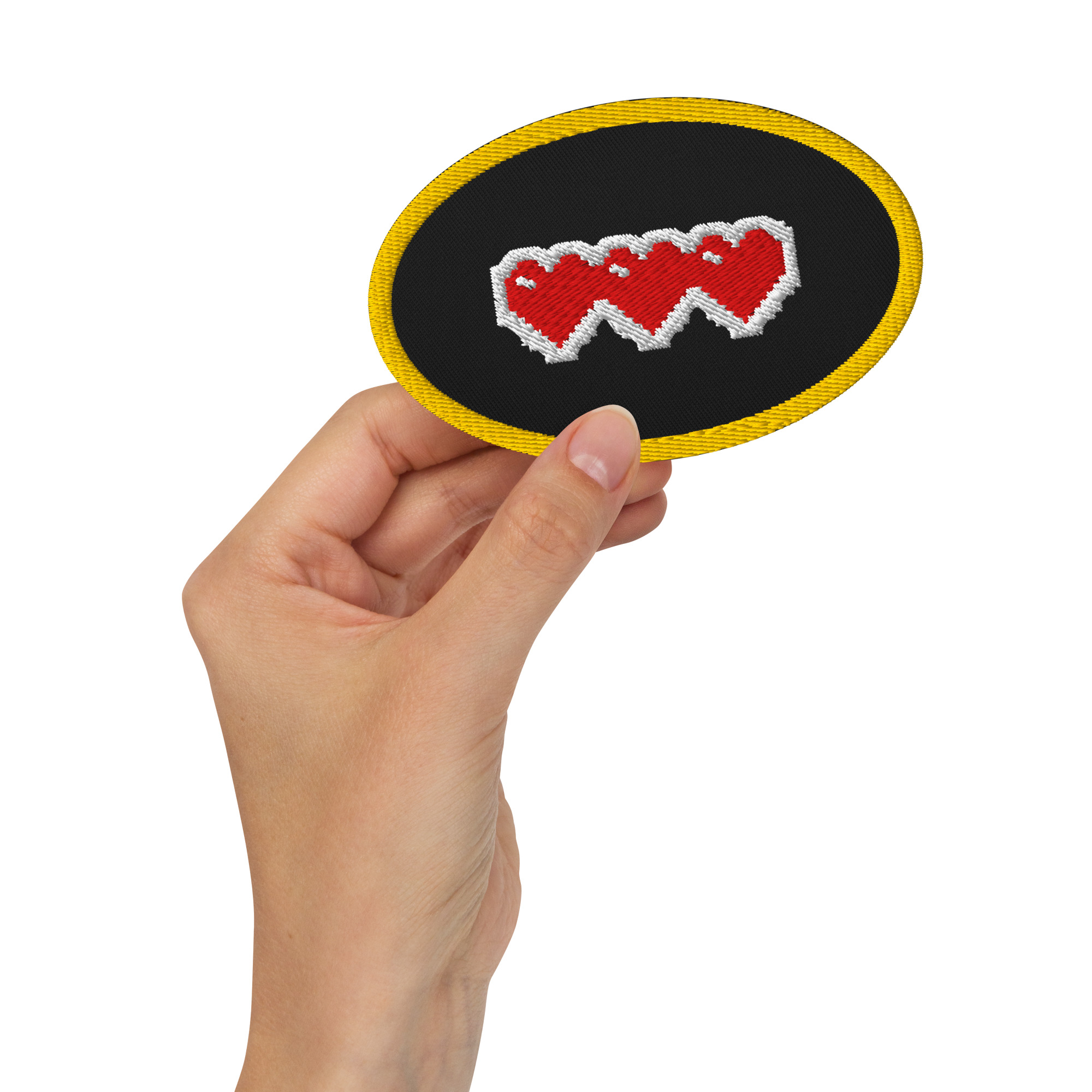 • Attachment options: iron-on, sew-on, or safety pin