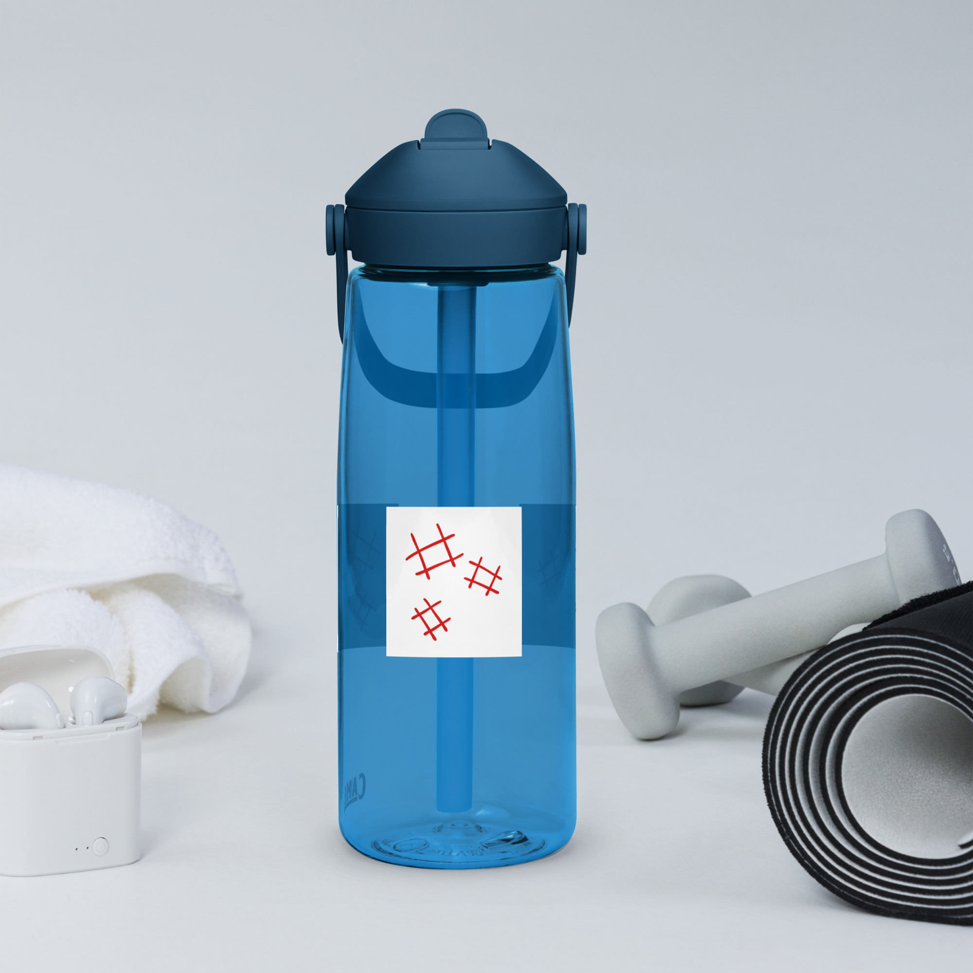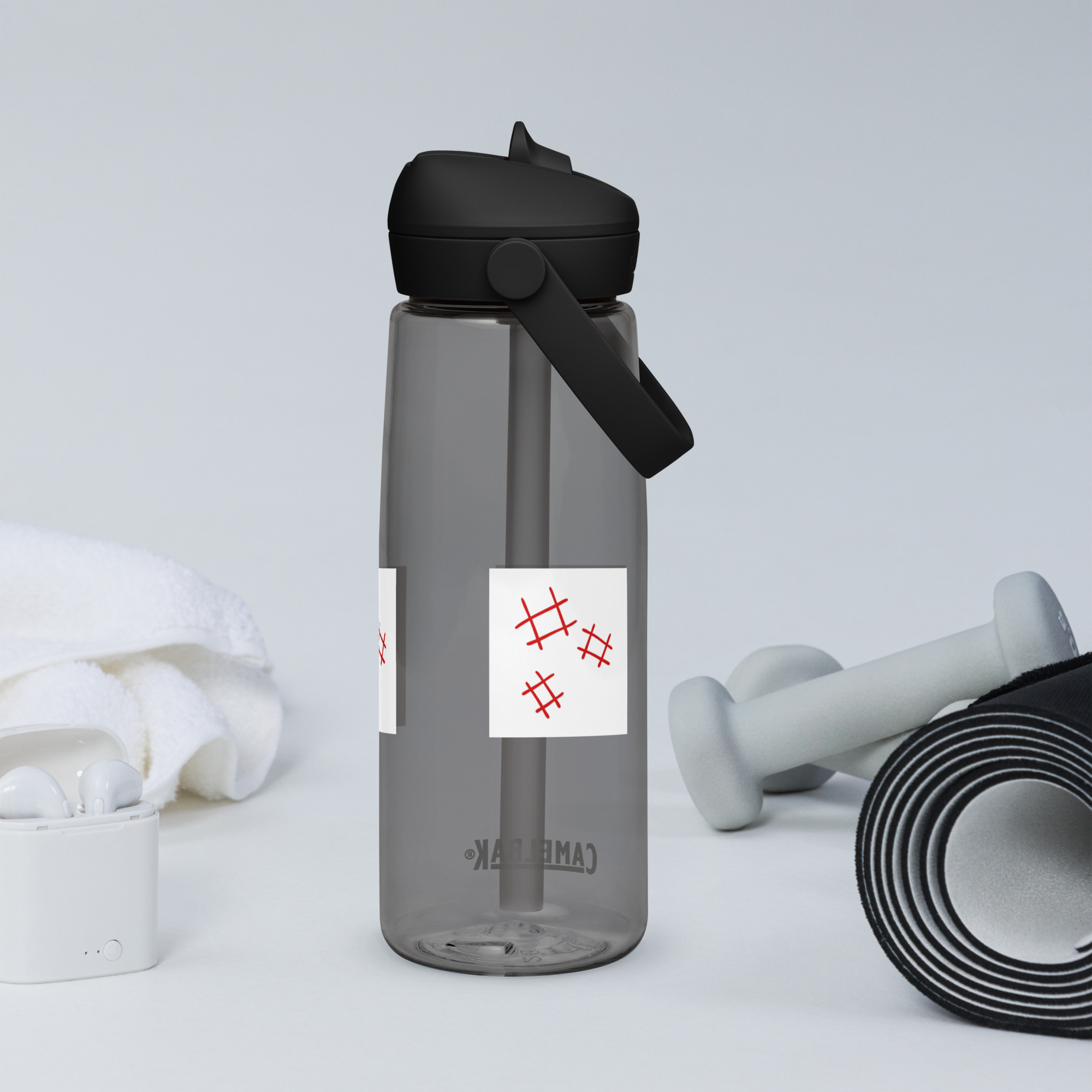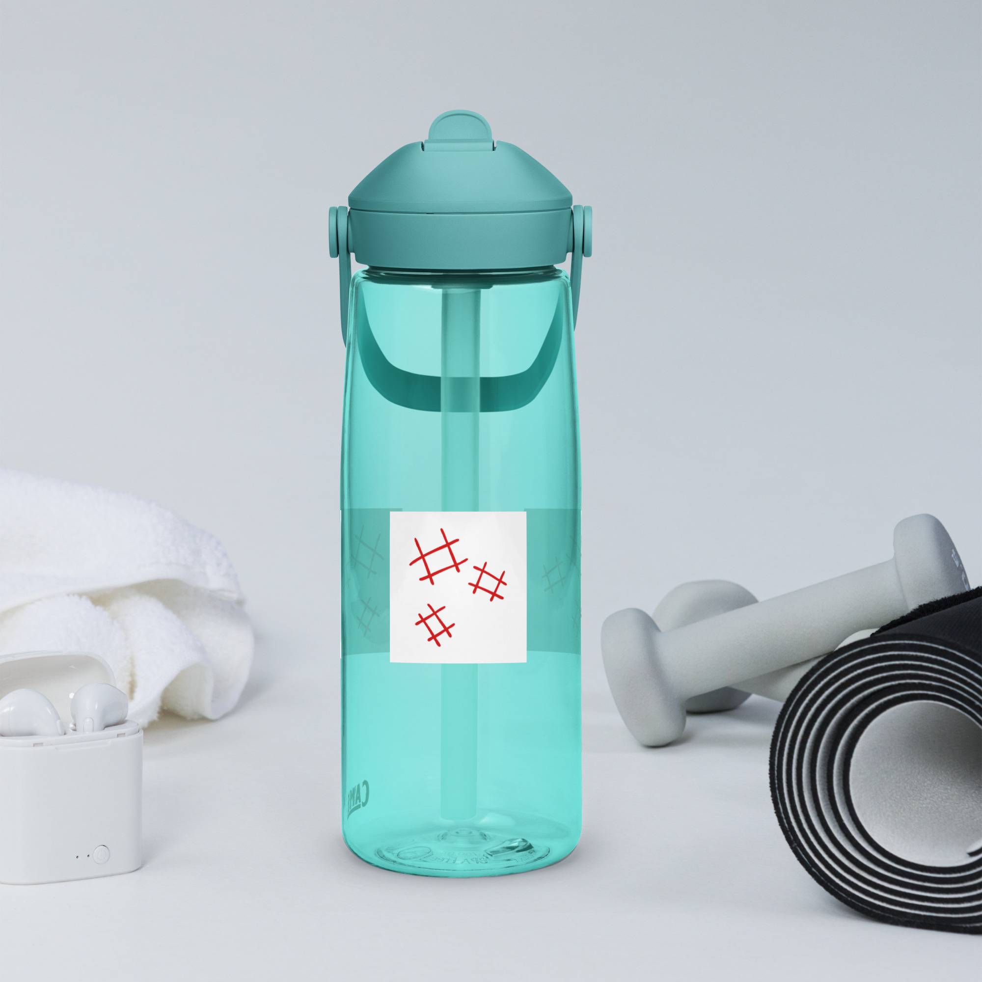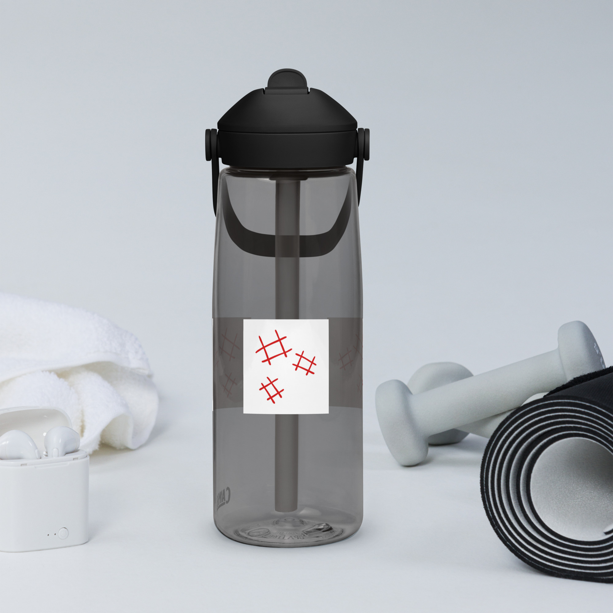 Stay hydrated in style with this flip straw water bottle, made from 50% recycled plastic. Resistant to stains, shattering, and odors, it keeps your drinks fresh, while the leak-proof cover and bite valve prevent spills. This extra-large bottle is ideal for extended gym, work, or study sessions!