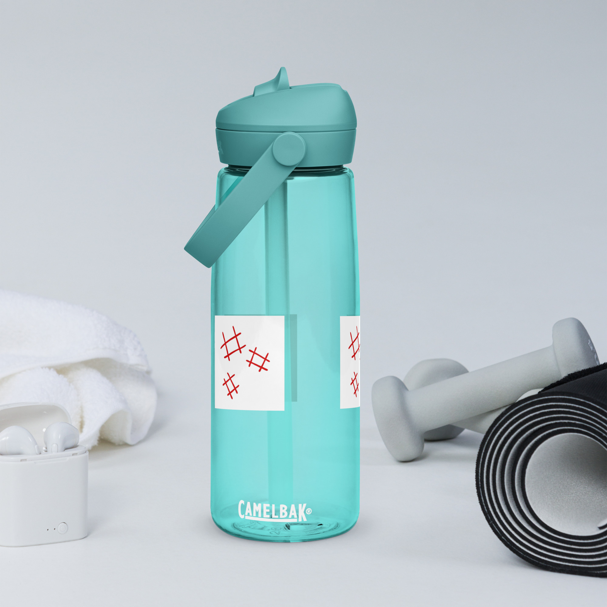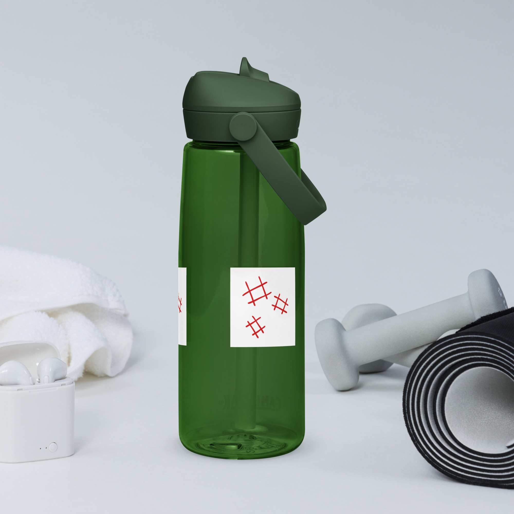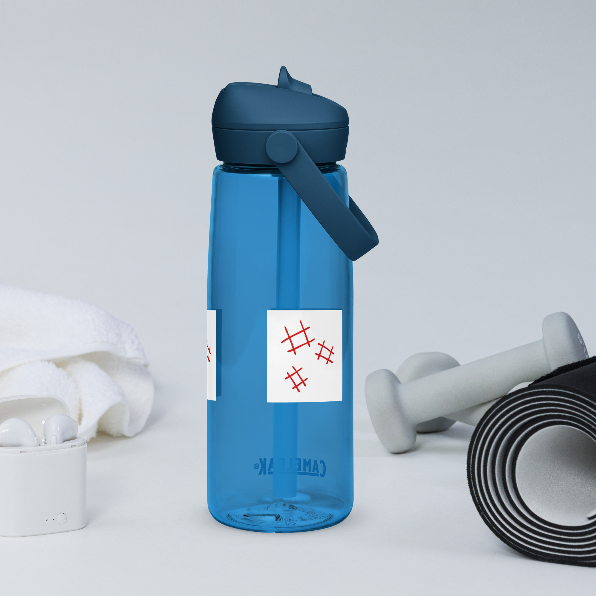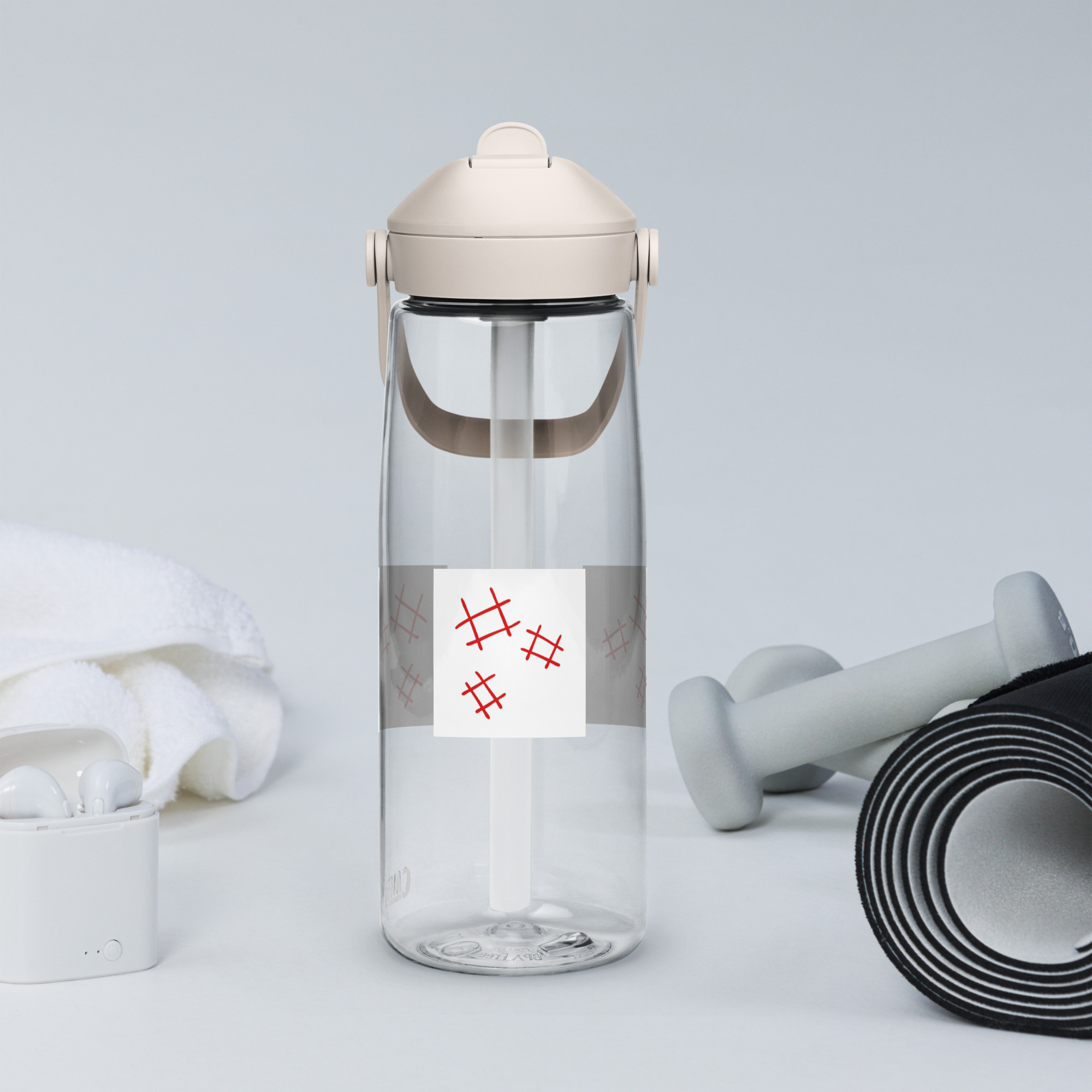 Stay hydrated in style with this flip straw water bottle, made from 50% recycled plastic. Resistant to stains, shattering, and odors, it keeps your drinks fresh, while the leak-proof cover and bite valve prevent spills. This extra-large bottle is ideal for extended gym, work, or study sessions!
