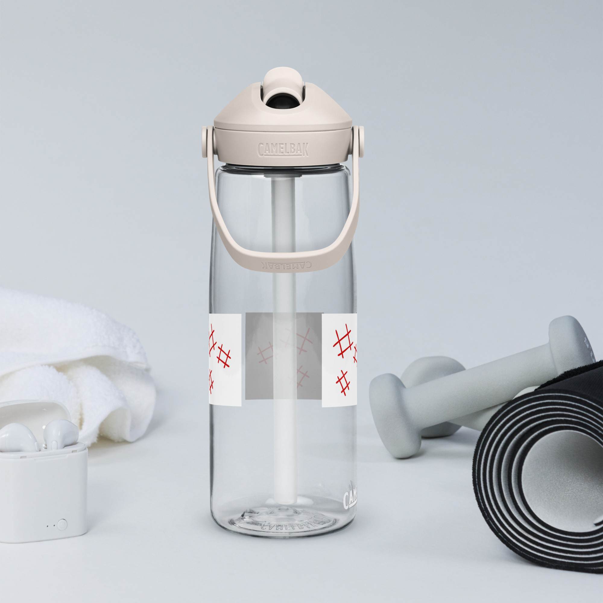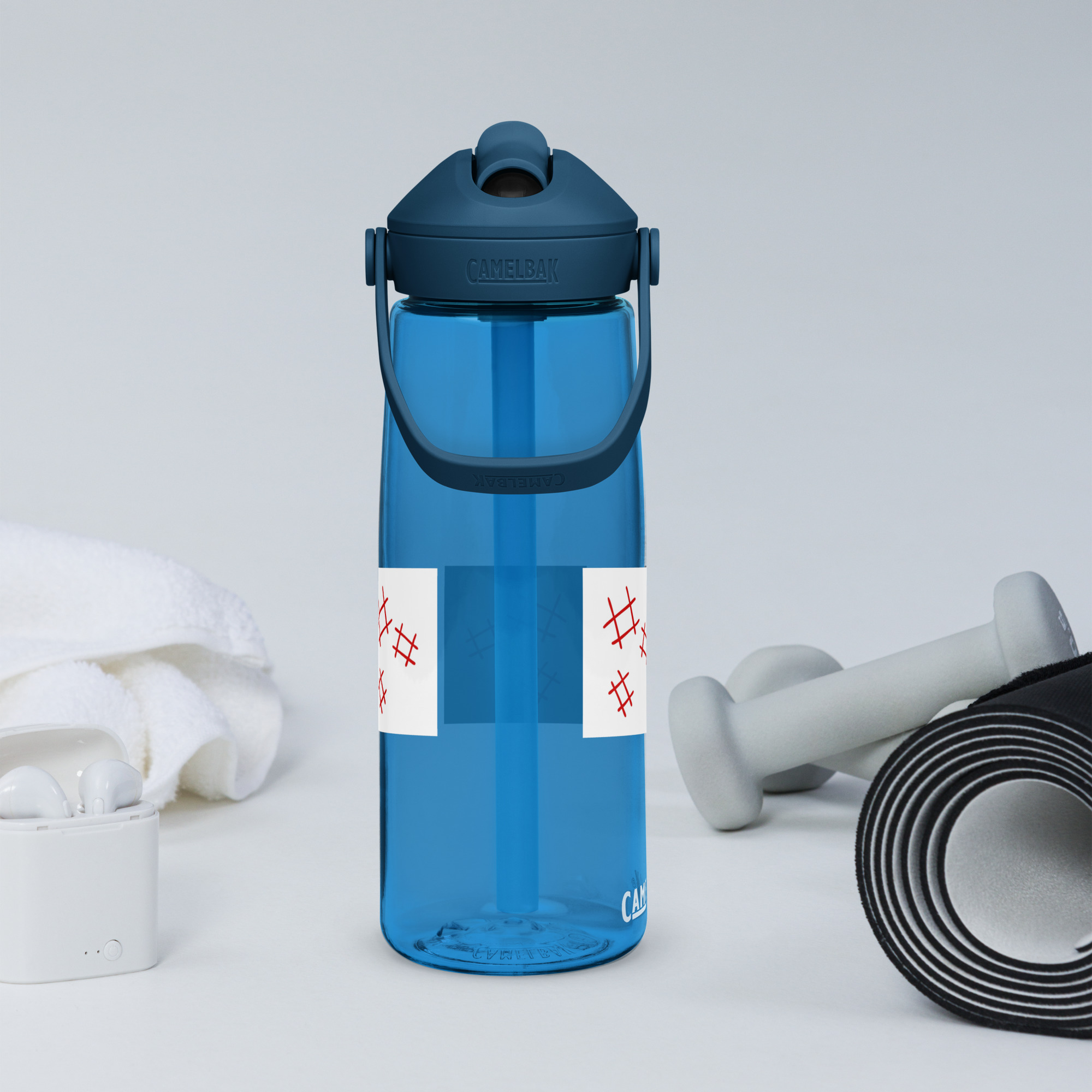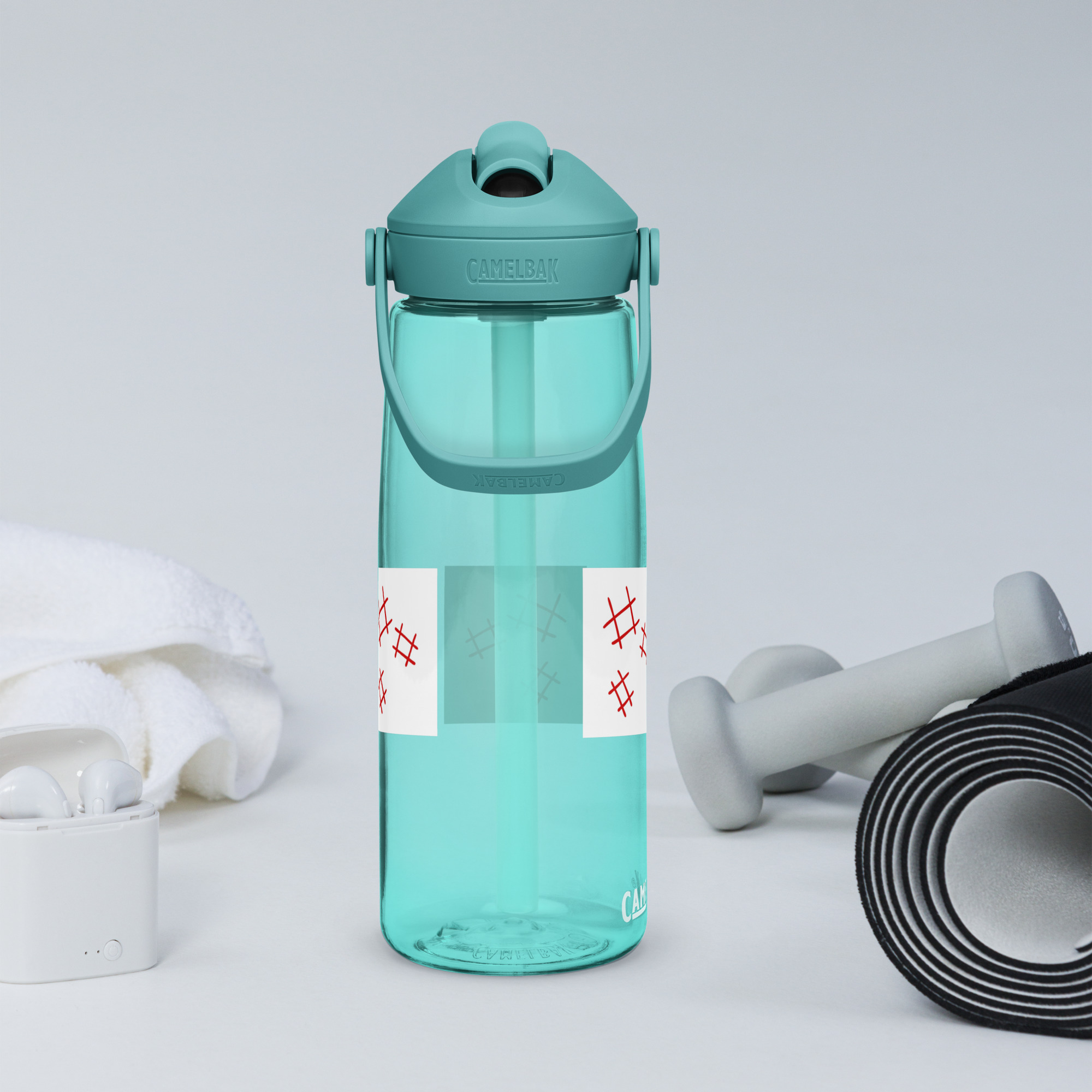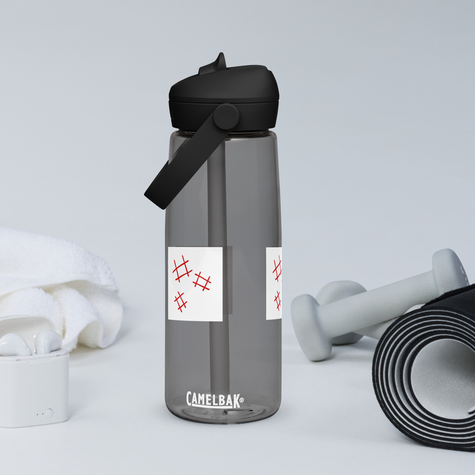Stay hydrated in style with this flip straw water bottle, made from 50% recycled plastic. Resistant to stains, shattering, and odors, it keeps your drinks fresh, while the leak-proof cover and bite valve prevent spills. This extra-large bottle is ideal for extended gym, work, or study sessions!