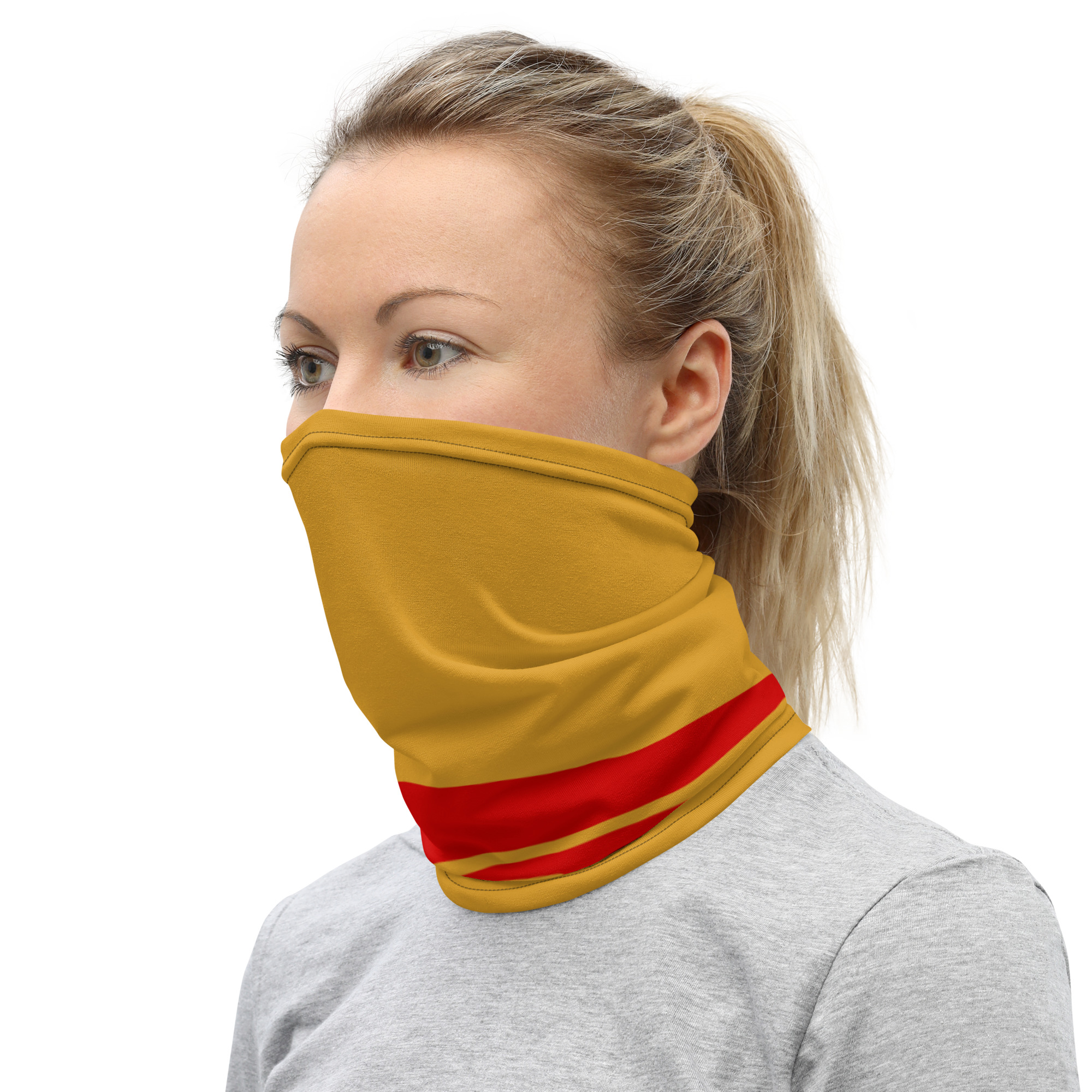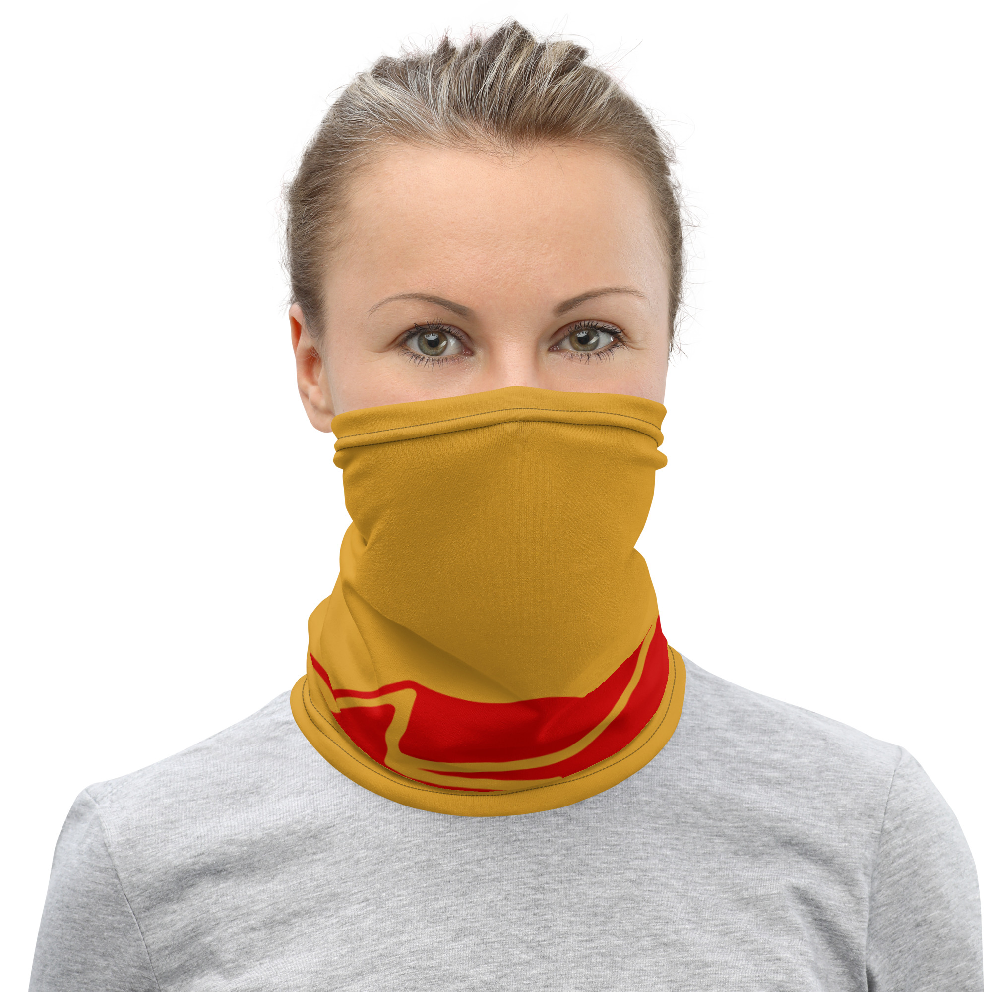 This neck gaiter is a versatile accessory that can be used as a face covering, headband, bandana, wristband, and neck warmer. Upgrade your accessory game and find a matching face shield for each of your outfits.