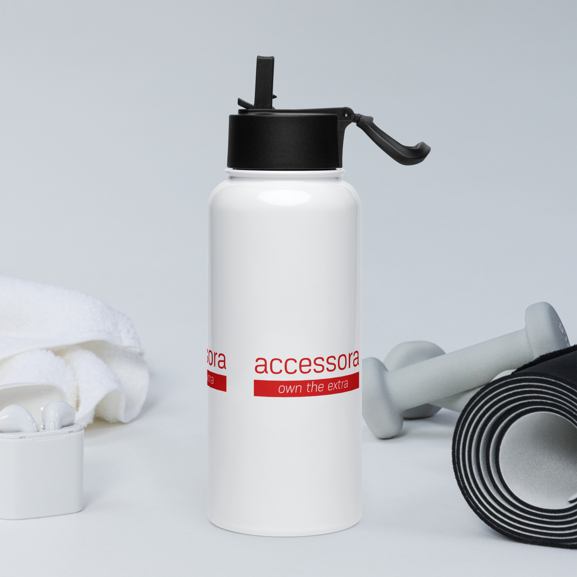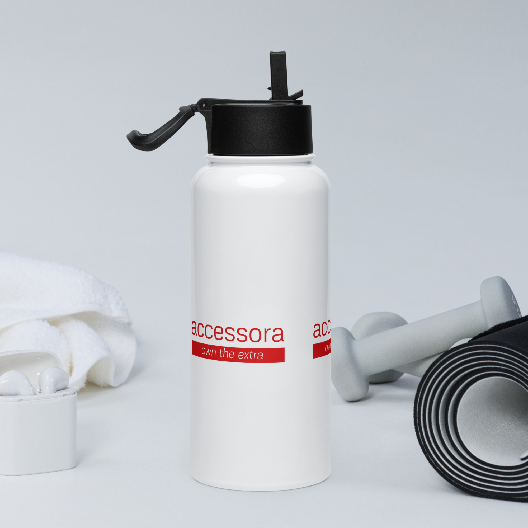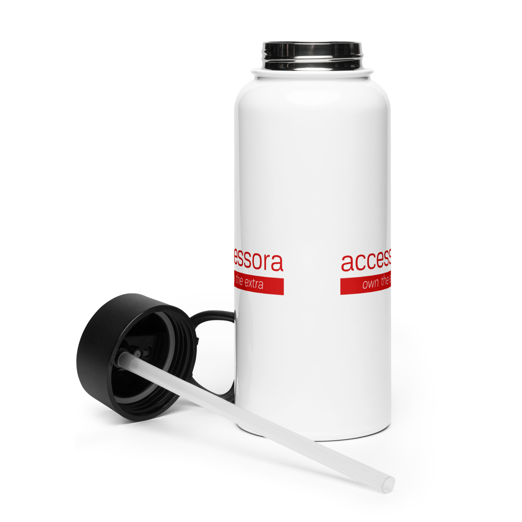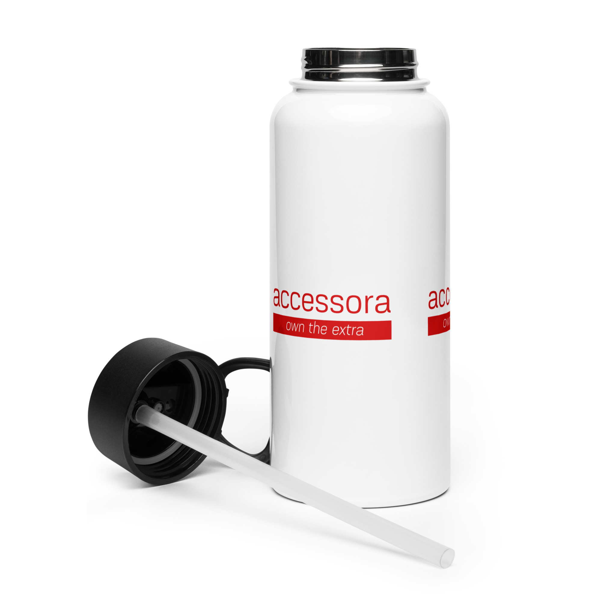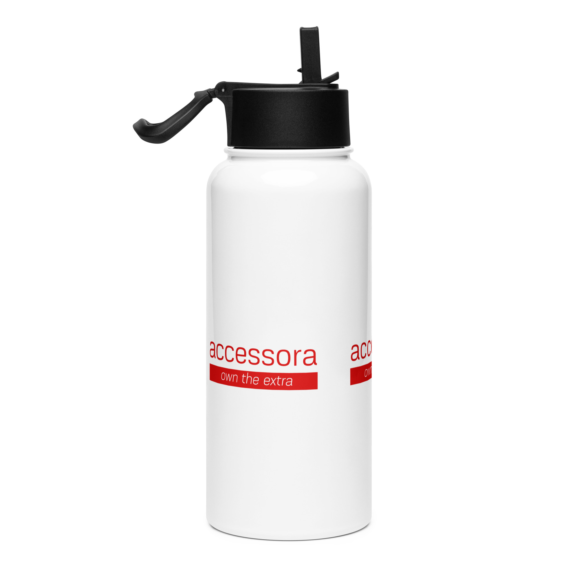 Stainless steel water bottle with a straw lid “Accessora own the extra”