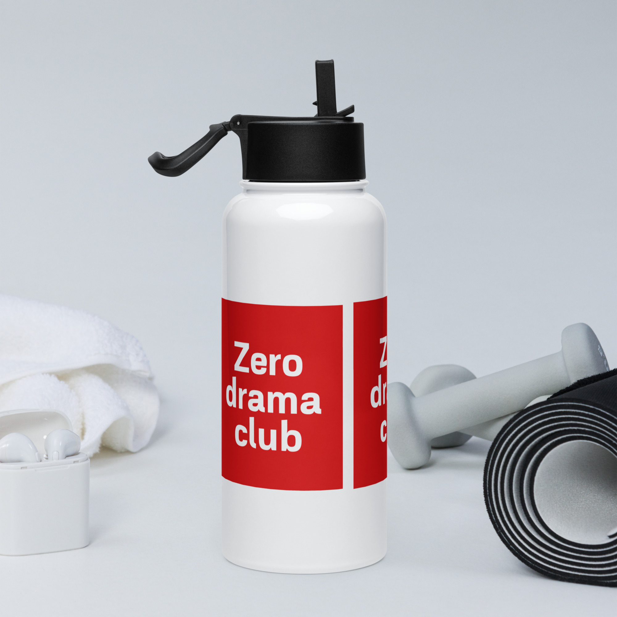 Stainless steel water bottle with a straw lid “Zero drama club”