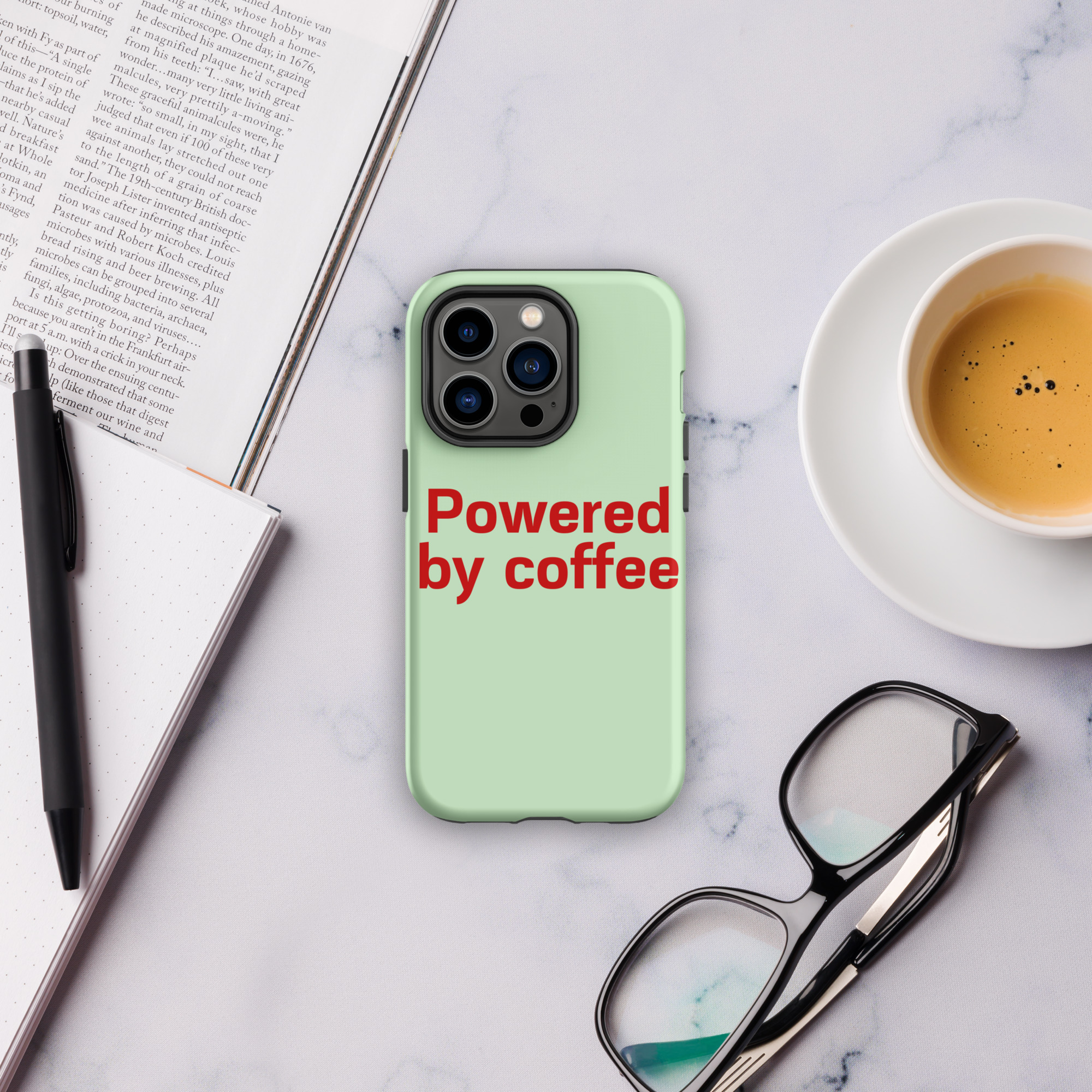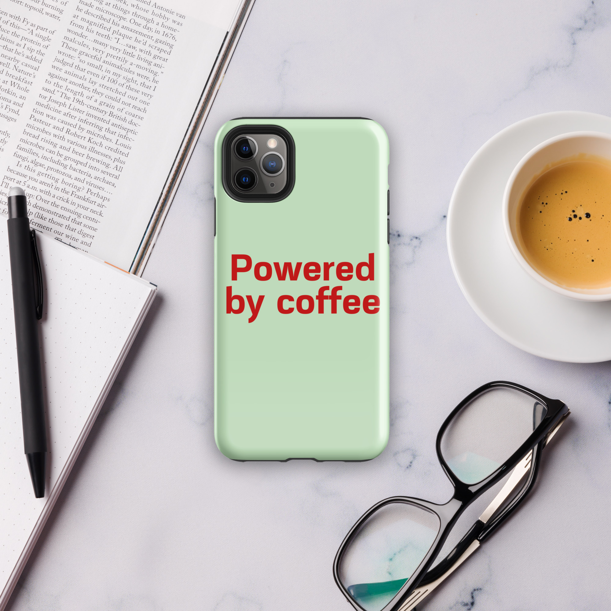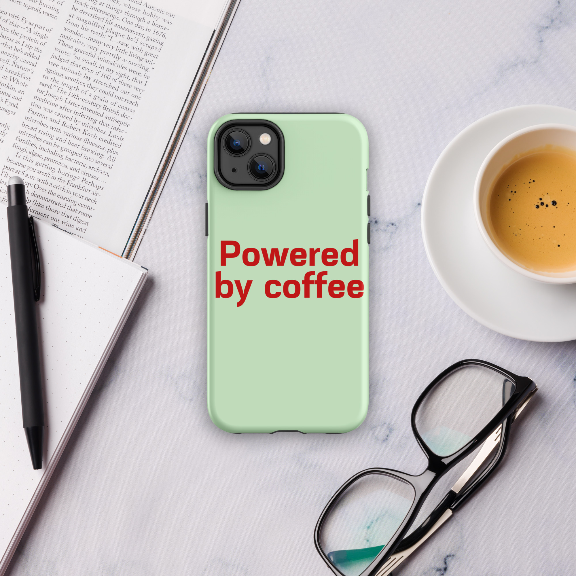 Tough Case for iPhone® “Powered by coffee”