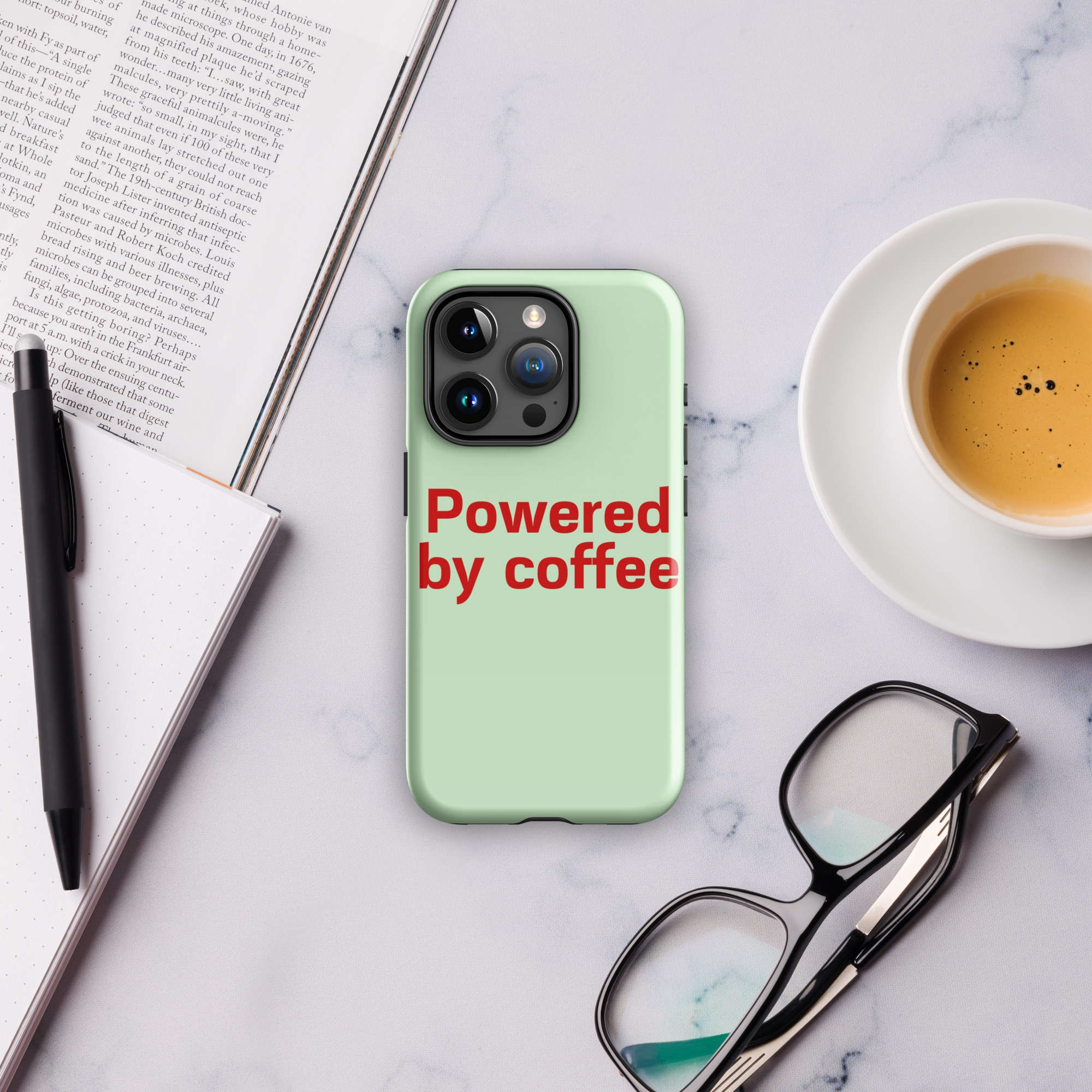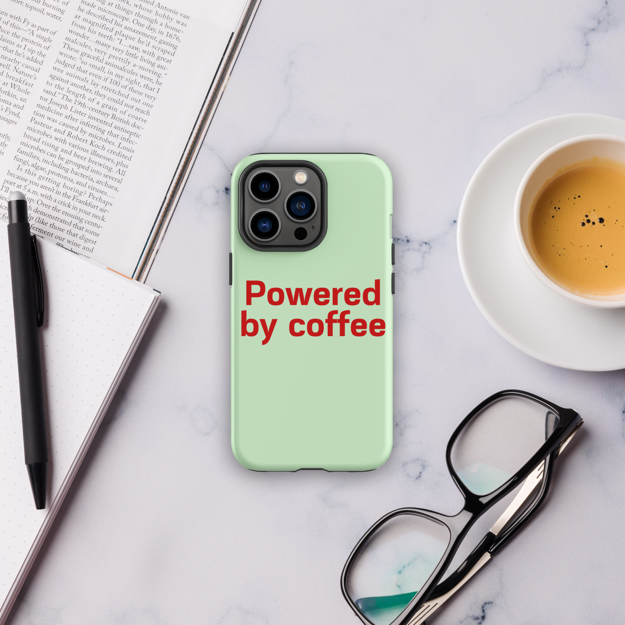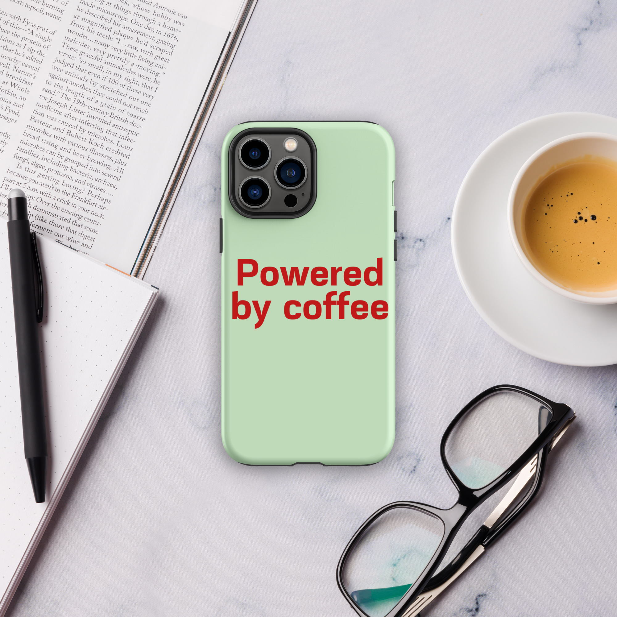 Tough Case for iPhone® “Powered by coffee”
